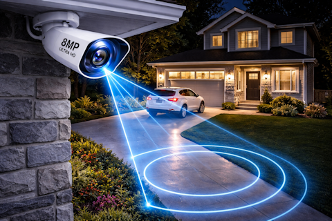8MP (4K) security cameras are high-resolution surveillance devices that capture video at 3840 x 2160 pixels, delivering exceptionally sharp and detailed footage. This level of clarity allows homeowners and businesses to easily identify faces, license plates, and fine details that lower-resolution cameras might miss. With their ability to cover wider areas without sacrificing image quality, 8MP cameras are ideal for monitoring large spaces such as driveways, yards, and parking areas. They also support advanced features like digital zoom, smart motion detection, and enhanced night vision, making them a powerful and future-proof solution for modern security systems.