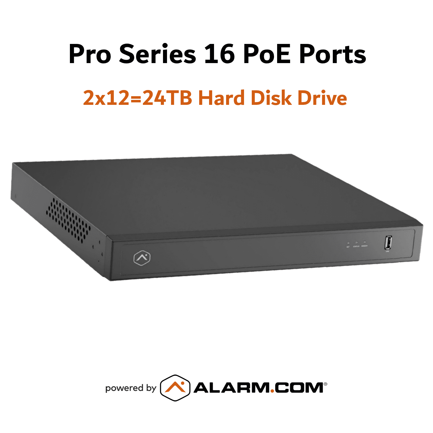 Please Note: The Alarm.com ADC-CSVR2016P-2X12TB requires an Alarm.com customer account with a service package that supports the Pro Series CSVR.
