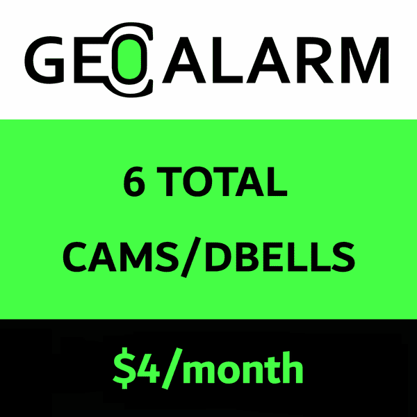 *Please Note: This add-on service should be ordered to upgrade an existing GeoAlarm gold level alarm monitoring plan, that has in excess of two (2) combined security cameras or video doorbells that comes included. You can add six (6) extra security cameras or video doorbells for a maximum of eight (8) total on one GeoAlarm account.