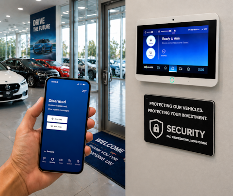An Auto Dealership Security System is a comprehensive solution designed to protect vehicle inventory, buildings, service areas, and customer data from theft, vandalism, and unauthorized access. These systems typically include intrusion detection sensors, high-definition surveillance cameras, access control, fire protection, and smart automation features that can be monitored and controlled remotely. Because auto dealerships often have large open lots and high-value assets, having a reliable and scalable security system is essential for maintaining safety and operational continuity.