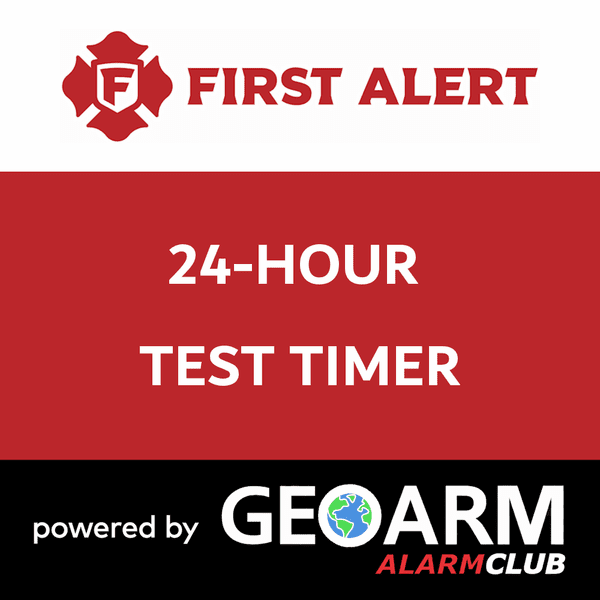 The 24-Hour Test Timer services include 1 check in from the First Alert control panel, though the alarm communicator, back to the GeoArm central station. The daily test timer ensures that your First Alert panel is sending communications to the Central Station and is working properly.