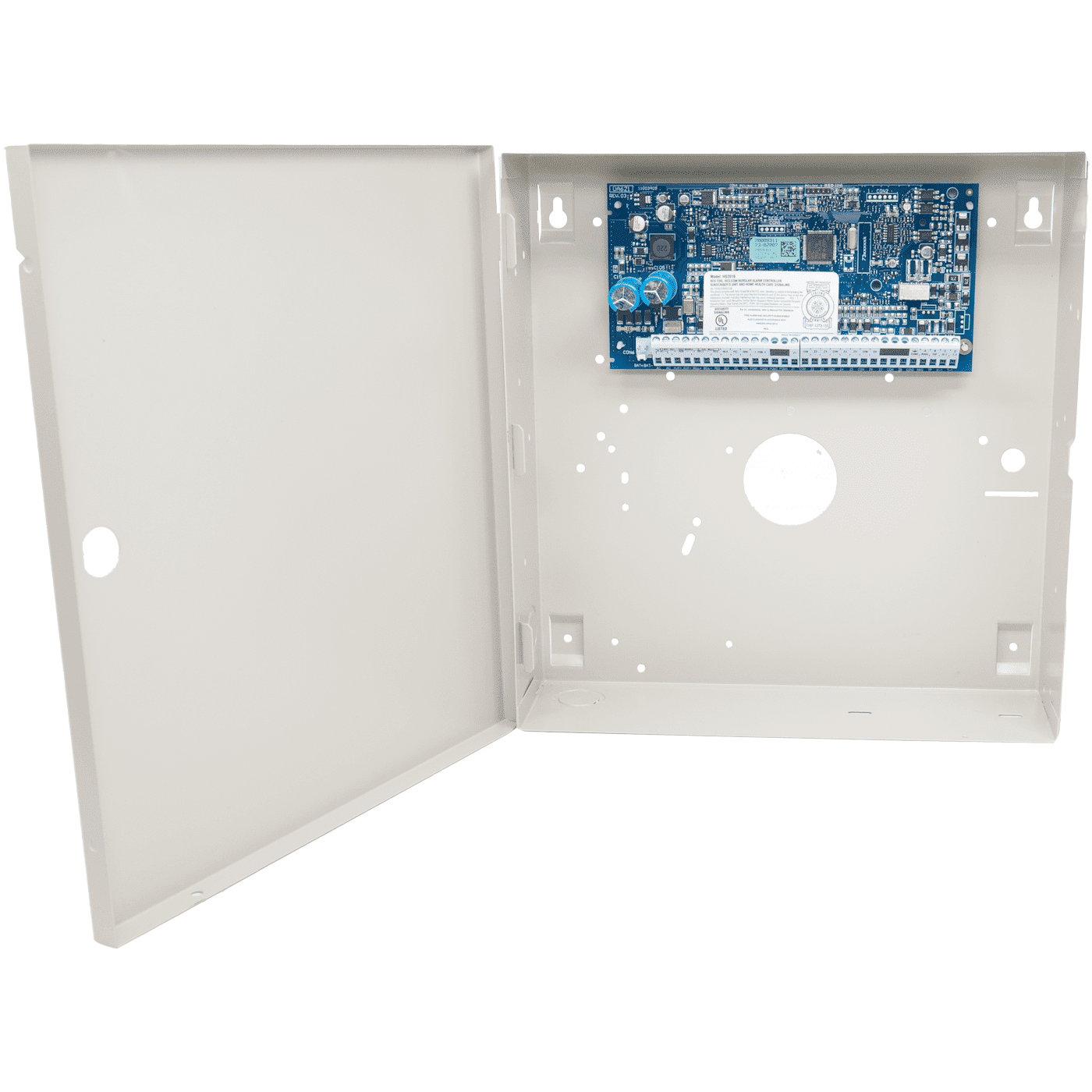 This Alarm.com PowerSeries HS2016 hybrid cellular Verizon LTE-M security system kit includes; hardwired control panel (HS2016), control panel battery (BAT1245), power transformer (PTD1640U), wireless 32-zone alarm receiver (RF5132-433), and an Alarm.com cellular Verizon LTE alarm communicator (TL880LE). This HS2016 kit is equipped to send the alarm signals over the cellular Verizon LTE network, to the GeoArm central monitoring station, using the included Alarm.com TL880LE interactive communicator.