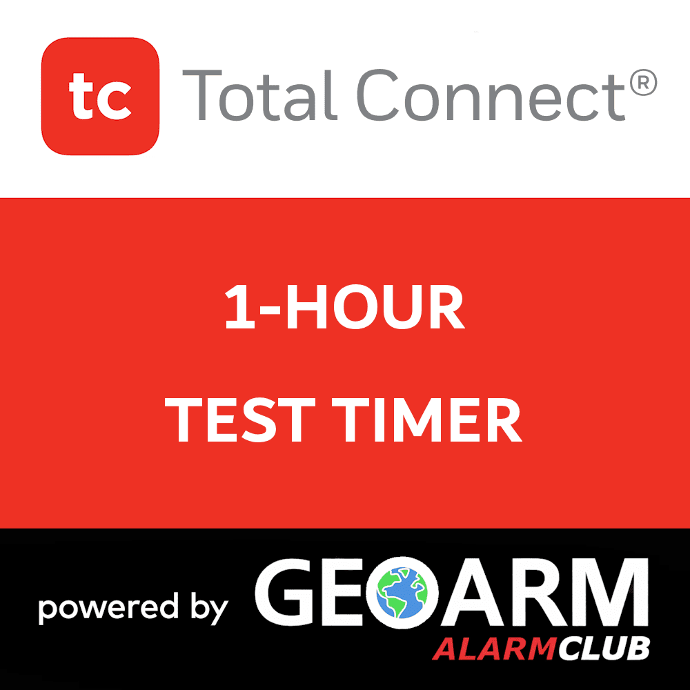 The 1-Hour Test Timer services include 24 check in's/day from the security system control panel, though the Total Connect alarm communicator, back to the GeoArm central station. The hourly test timer ensures that your Total Connect compatible control panel is sending communications to the Central Station and is working properly throughout the day.